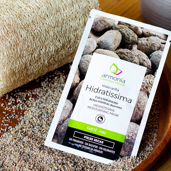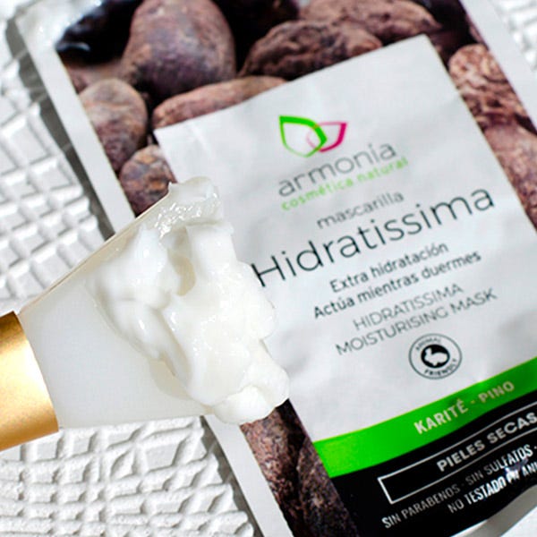 Mascarilla hidratante con ingredientes que aportan un cuidado hidratante y emoliente a la vez que genera un efecto barrera contra la pérdida de agua en la piel.