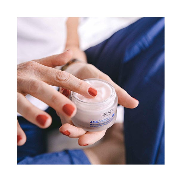 Una innovación de AGE ABSOLU, nuestra mascarilla antienvejecimiento global que estimula la síntesis de pro-colágeno X6* para devolver la densidad y rellenar todo tipo de pieles maduras, incluso las sensibles.