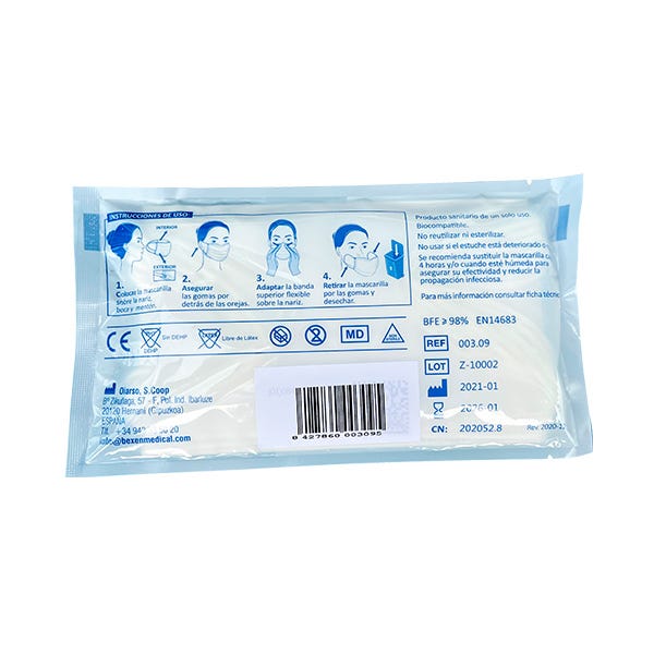 Producto sanitario que actúa de barrera cubriendo la boca, nariz y mentón del usuario para evitar la emisión de gotículas