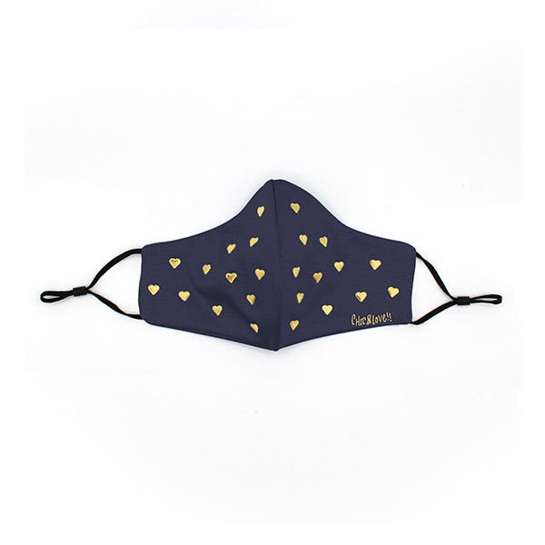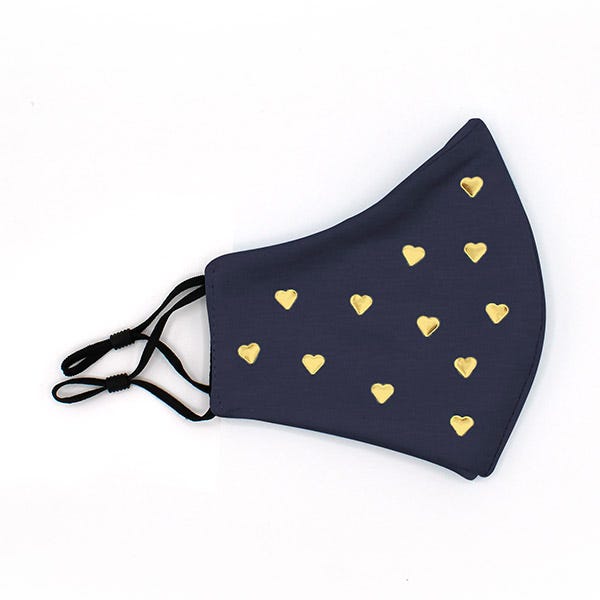 Mascarilla reutilizable azul marino para niños de la marca Chic & Love con tachuelas metálicas en forma de corazones.