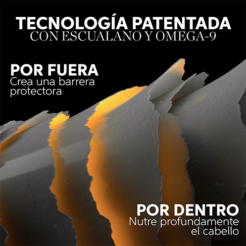 Enriquecida con escualano y omega-9 para nutrir profundamente el cabello por dentro, y fortalecer y reponer la barrera exterior del cabello.