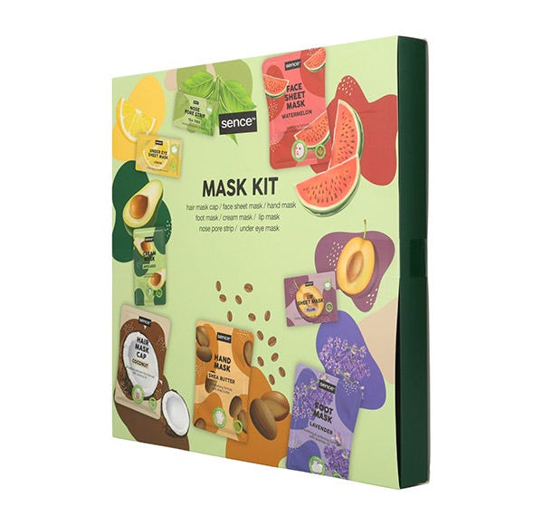 ¿Estás lista para mejorar tu rutina de cuidado de la piel? El kit de mascarillas Sence Planet Love es tu tesoro de mascarillas todo en uno. En su interior encontrarás una gorra para mascarilla capilar, una mascarilla facial, una mascarilla para manos, una mascarilla para pies, una mascarilla en crema, una mascarilla para labios, una tira para los poros de la nariz y una mascarilla para debajo de los ojos para lucir una piel radiante y relajada.