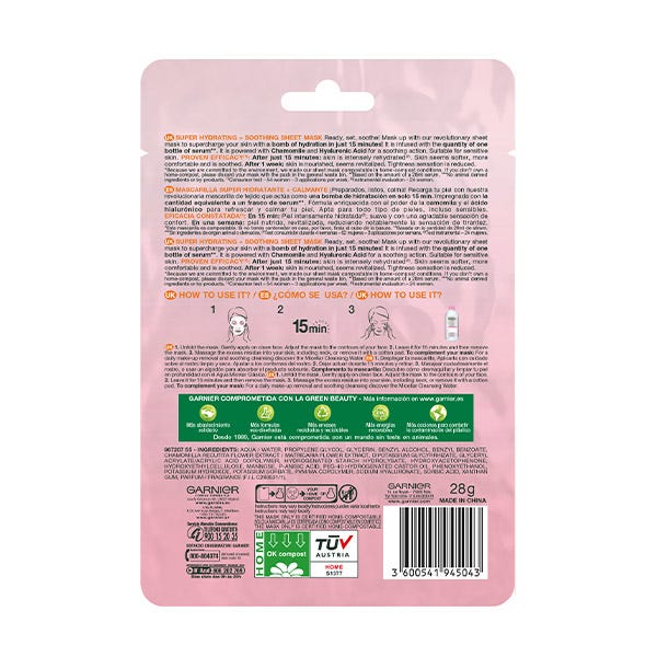 El tejido del que están hechas se adapta a tu rostro de manera suave y calma tu piel dejándola hidratada gracias a su contenido en camomila, ácido hialurónico y sérum hidratante.