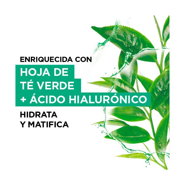 Consigue un resultado matificante gracias a su fórmula con extracto de té verde y ácido hilaurónico.