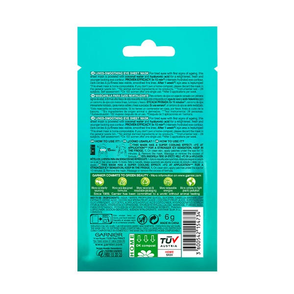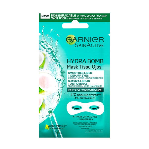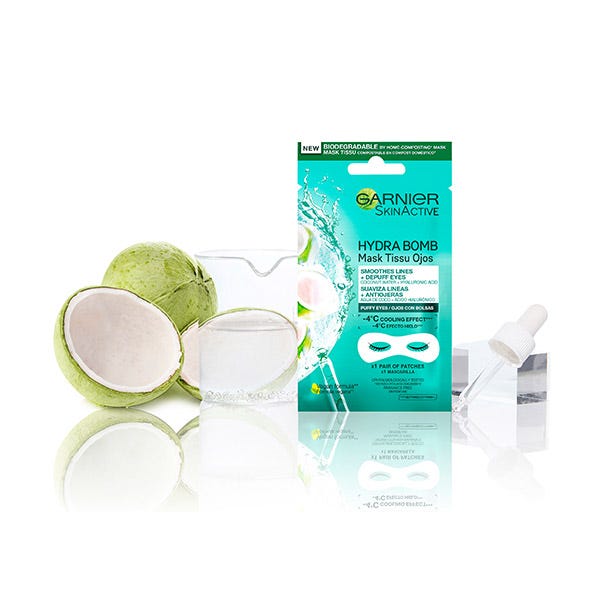 La Mascarilla de Tejido Revitalizante contiene agua de coco y ácido hialurónico y está diseñadas para suavizar las líneas, anti-ojeras.