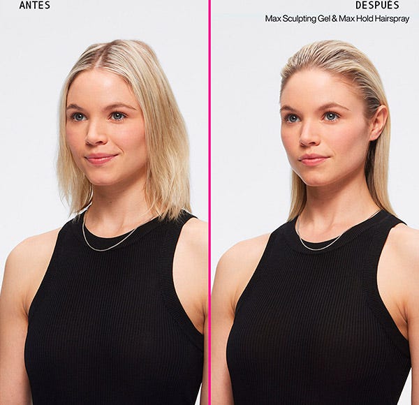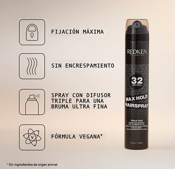 Max Hold Hairspray aporta una fijación y control de larga duración sin la sensación crujiente/aspera de las lacas tradicionales.