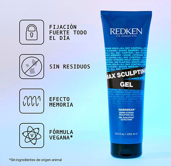 El gel de peinado proporciona definición, brillo y fijación de larga duración.