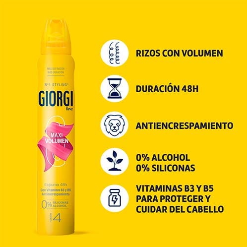 Prueba la Espuma Maxi Volumen de Giorgi para conseguir un cabello con cuerpo y una densidad espectacular.