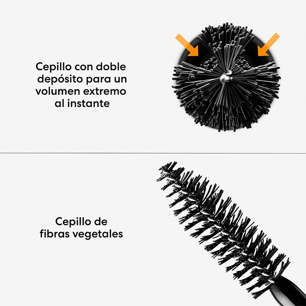 • Cepillo de fibras vegetales con dos depósitos para obtener un volumen extremo