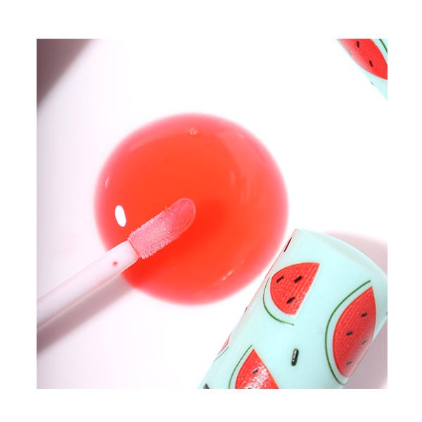 El aceite para labios de sandía está disponible como un aceite labial brillante que protege profundamente y realza los labios, resaltando de manera duradera su color natural.