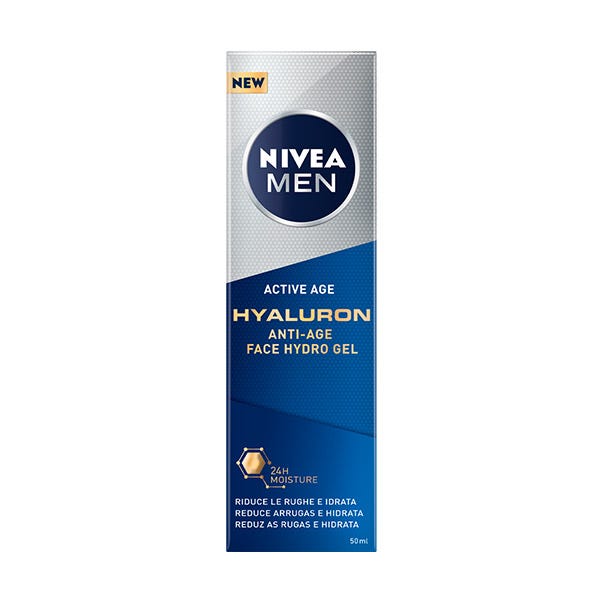 ¿Signos de envejecimiento? NIVEA MEN Hyaluron Gel Facial Hidratante Antiedad es el producto perfecto para mostrar un aspecto saludable y más joven en tu rostro. Ofrece un potente efecto antiedad gracias a su alta concentración de Ácido Hialurónico, la más alta de la gama NIVEA MEN Hyaluron. Su fórmula no grasa y de rápida absorción reduce visiblemente las arrugas y reafirma eficazmente la piel, mientras que refresca, revitaliza e hidrata durante 24 horas. Aplicación: aplicar a diario sobre cara y cuello, evitando el contacto directo con los ojos. Dermatológicamente comprobado.
