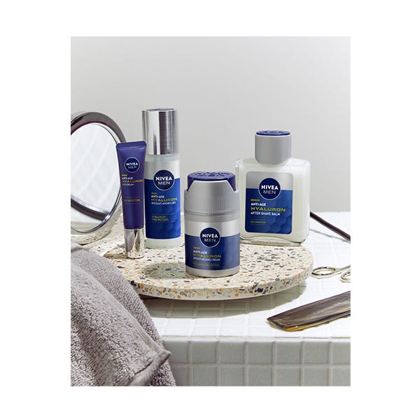 Para obtener mejores resultados, combínala con NIVEA MEN Hyaluron Contorno de Ojos Antiedad.