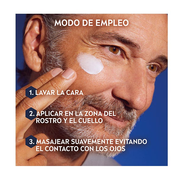Aplicar sobre la piel totalmente limpia durante el día y/o noche. Evitar la aplicación de la zona de los ojos. Ideal para hombres mayores de 35 años.