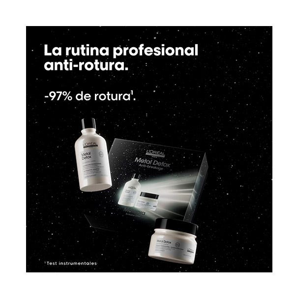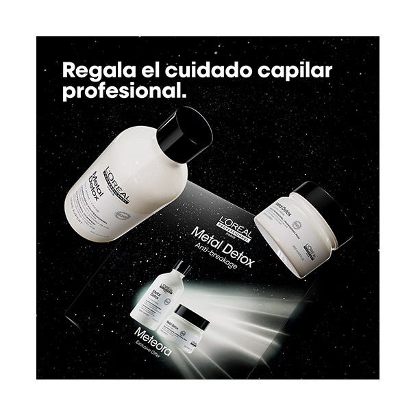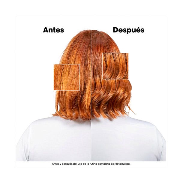 La mascarilla capilar Metal Detox (250ml) protege la fibra contra la deposición de nuevos metales, la fibra es menos porosa y el cabello se vuelve más brillante y con un aspecto saludable. Actúa contra la rotura del cabello y mantiene el color. Previene la deposición de metales en la fibra capilar. Deja el cabello revitalizado, aportándole suavidad y brillo. Previene cambios de color no deseados después de la decoloración, el tinte o el balayage.