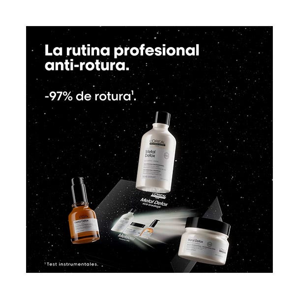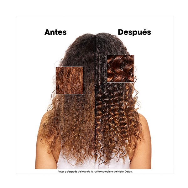 La mascarilla capilar Metal Detox (250ml) protege la fibra contra la deposición de nuevos metales, la fibra es menos porosa y el cabello se vuelve más brillante y con un aspecto saludable. Actúa contra la rotura del cabello y mantiene el color. Previene la deposición de metales en la fibra capilar. Deja el cabello revitalizado, aportándole suavidad y brillo. Previene cambios de color no deseados después de la decoloración, el tinte o el balayage.
