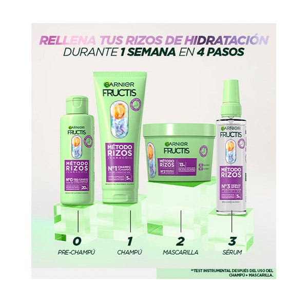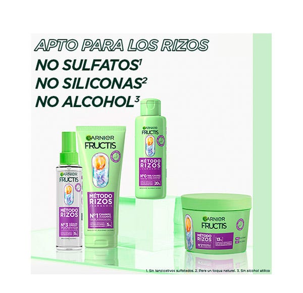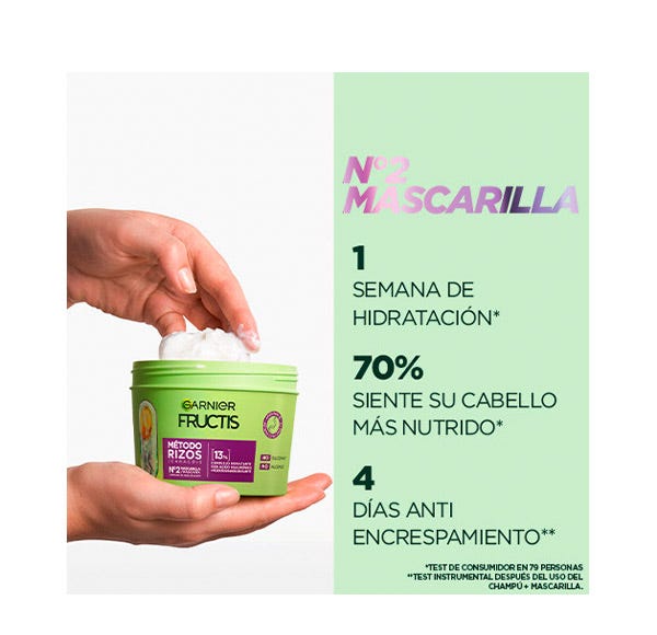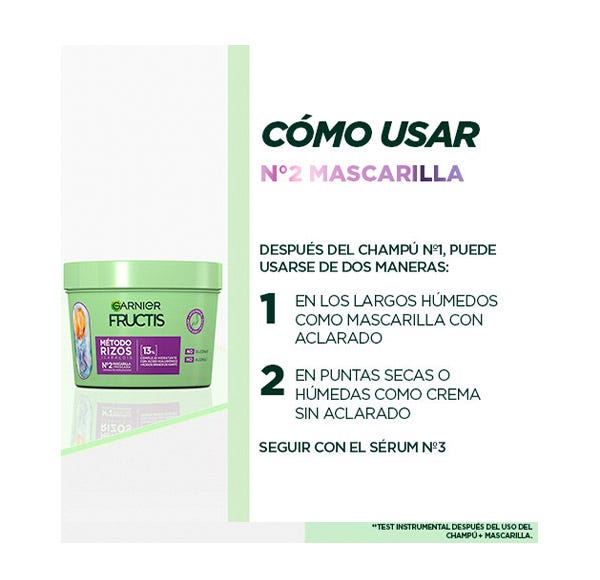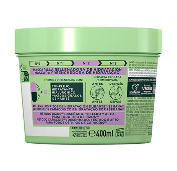 Nueva mascarilla capilar Garnier Fructis Método rizos, con esta nueva gama conseguirás un rizo más hidratado gracias a los ácidos grasos de karité + un complejo hidratante con ácido hialurónico