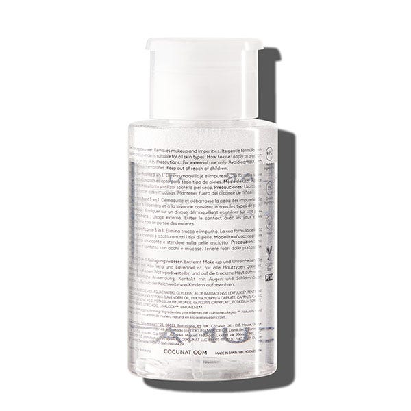Sin siliconas ni parabenos, está enriquecida con Aloe Vera y Lavanda para que se pueda aplicar incluso en las pieles más sensibles. Elimina eficazmente los restos de maquillaje e impurezas adheridas a la piel.