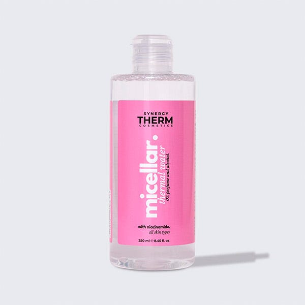 Thermal Micellar Water (Agua Termal Micelar) está formulada para eliminar eficazmente el maquillaje y las impurezas al tiempo que proporciona un cuidado suave para la piel sensible. Esta solución de limpieza suave, enriquecida con niacinamida (vitamina B3) y betaína, no solo purifica la piel, sino que también ayuda a mantener su barrera protectora natural.