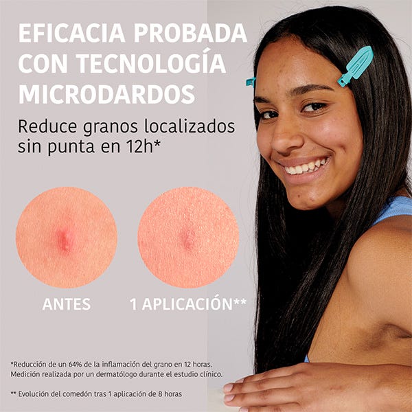 Gracias a esta combinación tecnológica y a la acción sinérgica de sus ingredientes, el parche ayuda a reducir visiblemente granos inflamados, disminuir el enrojecimiento, prevenir la obstrucción del poro y favorecer la renovación epidérmica.