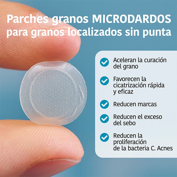 Los microdardos están compuestos por una matriz sólida de Ácido Hialurónico liofilizado que incorpora principios activos como Ácido Salicílico, Niacinamida, Zinc PCA y Retinol. Esta tecnología permite una penetración mecánica superficial, creando microcanales epidérmicos que mejoran la biodisponibilidad de los ingredientes y su eficacia en la zona a tratar. En contacto con la humedad de la piel, los microdardos se disuelven progresivamente (aprox. 4 horas), liberando los activos directamente en el foco de la imperfección.La base hidrocoloide actúa en sinergia con la tecnología de microdardos, absorbiendo el exceso de sebo, protegiendo la zona de agentes externos y generando un microentorno húmedo que favorece el proceso de regeneración cutánea y la reducción de marcas post-inflamatorias.