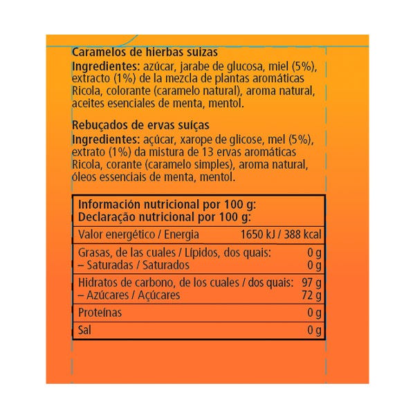 Gama de productos con 13 hierbas suizas, que proporcionan sabor característico y suave efecto balsámico, aliviando y refrescando vías respiratorias y garganta.