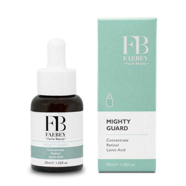Retinol; suaviza las marcas residuales, estimula el colágeno, elastina y ácido hialurónico, haciendo que la piel esté más firme e hidratada. Ácido láctico; elimina las células muertas de la superficie de la piel, ayudándola a lucir más brillante.