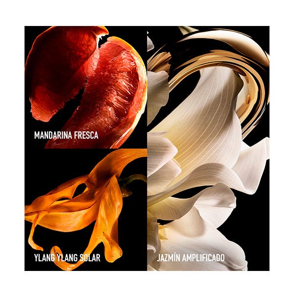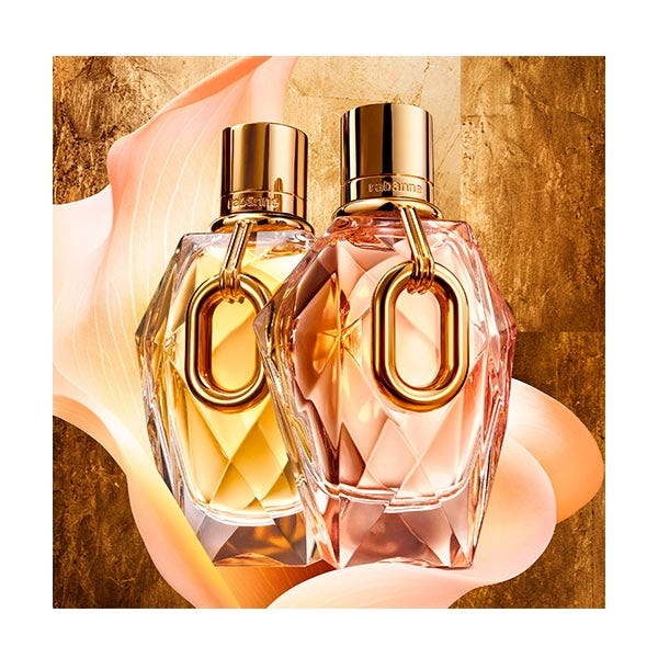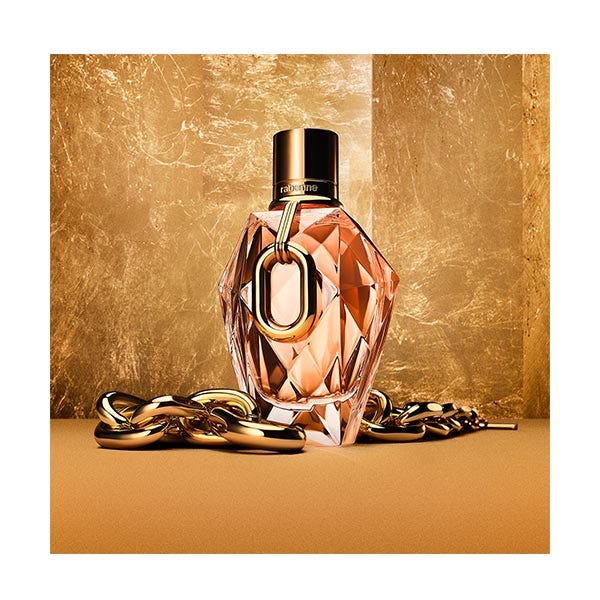Es oro puro. Sé una Madre de Oro. Éxito y feminidad poderosa. La Edición Limitada de Rabanne es un estimulante Grand Floral que mezcla ingredientes puramente dorados. Jazmín sobredimensionado y bañado en oro. Un toque de mandarina fresca. La sensualidad solar del ylang ylang. Million Gold for Her Pure Jasmine, de Rabanne.
