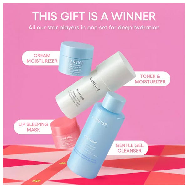 Mejora tu rutina de cuidado de la piel con Icons To Get Set de LANEIGE. Con cuatro fórmulas superventas, cada una en formato de viaje, el kit promueve una tez fresca y luminosa.