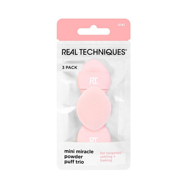 El trío de esponjas en polvo Mini Miracle de Real Techniques te ofrece tres bocanadas de tamaño mini diseñadas con nuestro material de esponja en polvo más vendido para un fraguado y horneado específicos.