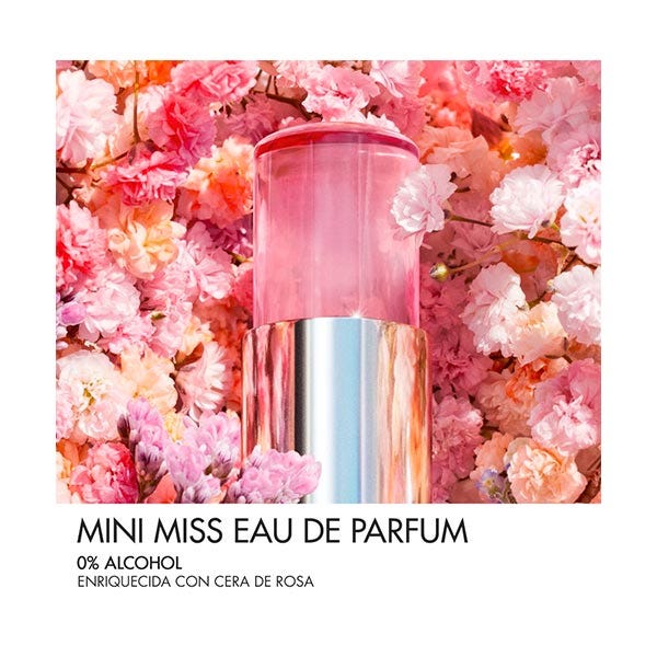 Compuesta por un 82 % de ingredientes de origen natural y sin alcohol, la fórmula de este perfume en barra preserva la hidratación de la piel. Para llevar consigo a todas partes, un estuche forrado con el emblemático motivo pata de gallo de la Maison Dior cobija este perfume sólido ultrapráctico. El encanto de un verdadero accesorio de moda con los colores de Miss Dior. El perfume en stick ideal para retoques como complemento a las vaporizaciones de Miss Dior Eau de Parfum, para que su estela le acompañe durante todo el día.