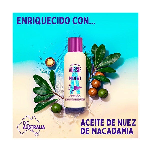 El champú Aussie Miracle Moist está aquí. Enriquecido con aceite de nuez de macadamia australiano, este champú hidratante proporciona a tu pelo seco y quebradizo la nutrición que tanto necesita. Además, ¡está certificado por PETA como CrueltyFree! ¿Y ese icónico aroma Aussie? Prepárate para convertirte en el centrode atención. Combínalo con el resto de la gama Aussie Miracle Moist para un pelo tan hidratado que dirás adiós al pelo seco.