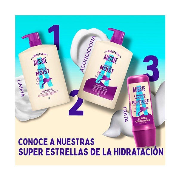 PARA MEJORES RESULTADOS (¿qué otro tipo?), úsalo con el Acondicionador Aussie Miracle Moist o el Acondicionador Profundo 3 Minute Miracle