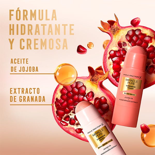 Crea un suave resplandor luminoso con el Max Factor Miracle Pure Balm Iluminador, un bálsamo multifuncional con ingredientes para el cuidado de la piel que aporta luminosidad instantánea. Este bálsamo ultra-cremoso se desliza sobre la piel y se difumina perfectamente para iluminar y realzar tu brillo natural. Formulado con aceite hidratante de jojoba y extracto de granada con efecto antioxidante, este producto deja una sensación suave y sedosa en la piel. Descubre tu dúo perfecto y combínalo con un Max Factor Blush Balm para un color y resplandor que duran todo el día.