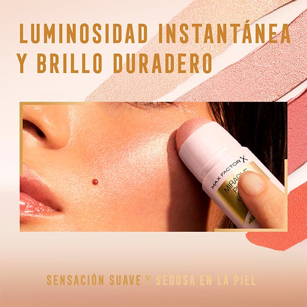 Aplica Max Factor Miracle Pure Balm Iluminador en áreas del rostro como los pómulos o el arco de las cejas para un resplandor instantáneo.