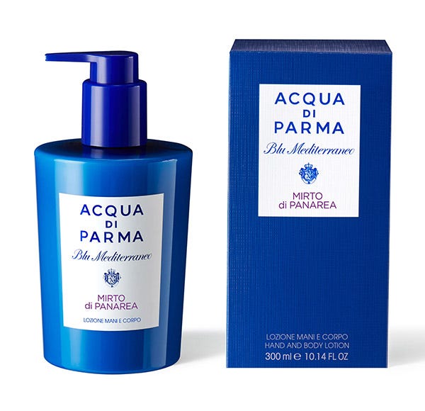 Una maravillosa y envolvente sensación con la Loción para Manos y Cuerpo Mirto di Panarea de doble uso que se absorbe rápidamente en la piel para una hidratación y un aroma regenerador que perdura.
