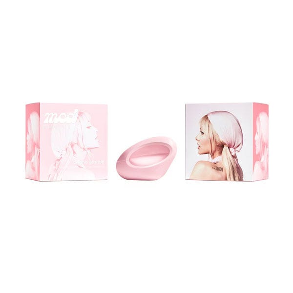 MOD Blush de Ariana Grande: fresco y picante a la vez. MOD: La inconfundible fragancia Mod Blush de Ariana Grande ofrece una experiencia sensual y poderosa. La extraordinaria composición se abre con bergamota italiana, fruta de la pasión y frambuesa con un toque de pimienta rosa, antes de unir pétalos de rosa fresca con magnolia y ligeros toques de pera en la lujosa nota de corazón. La firma irresistible seduce finalmente con matices especiados de ambrox, madera y almizcle.