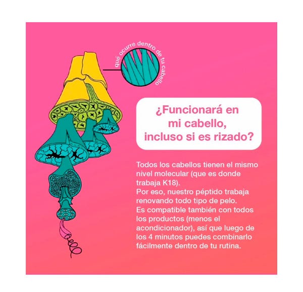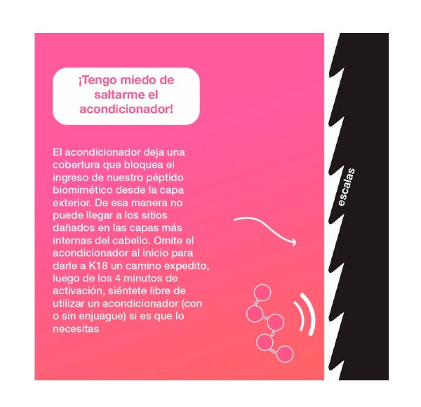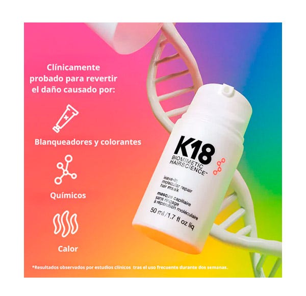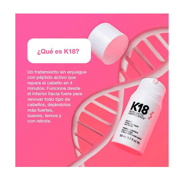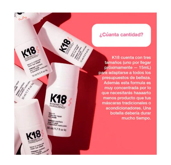 - Funciona en todo tipo de cabello : Debido a que K18 HairScience™ funciona a nivel molecular, este producto es efectivo en todo tipo de cabello.