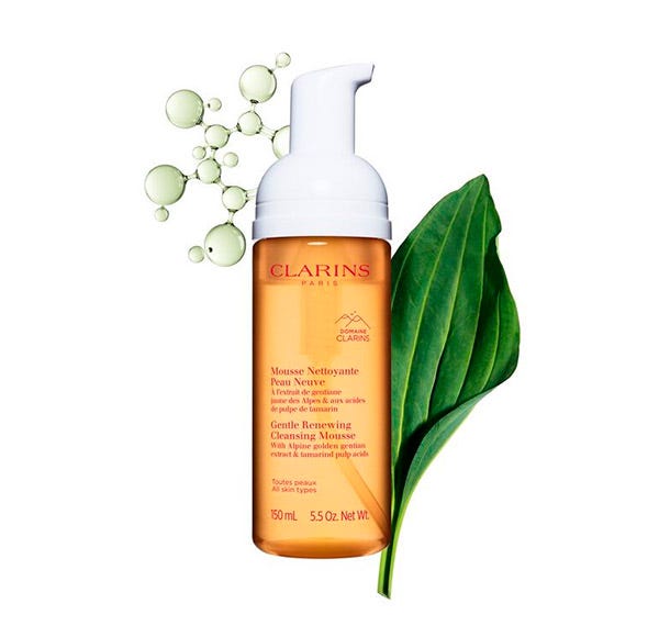 Esta espuma limpiadora limpia la piel, desmaquilla con suavidad y reaviva la luminosidad de la tez apagada para un efecto piel nueva inmediato. Sus ácidos de pulpa de tamarindo, que contienen AHA, exfolian suavemente la piel dejándola más radiante. Su fórmula está enriquecida con el [Gentle Complex] de Clarins, con extractos de genciana amarilla bio y melisa bio, que ayuda a calmar y suavizar la piel. El extracto de moringa limita la adherencia de impurezas contaminantes sobre la piel. Su práctico frasco con dosificador es muy fácil de usar.