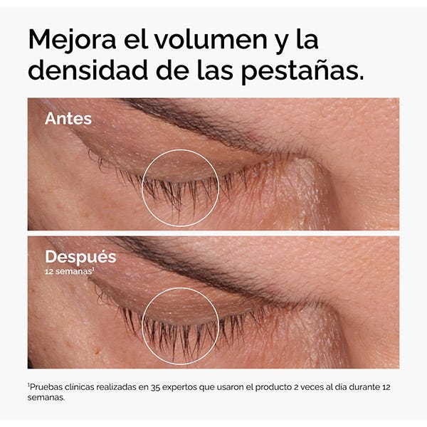 Imagen before-after: pruebas clínicas realizadas en 35 sujetos que utilizaron el producto dos veces al día durante 12 semanas.