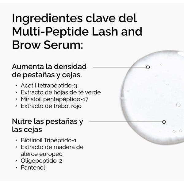 Multi-Peptide Lash and Brow Serum es una fórmula liviana y no grasa diseñada para mejorar la apariencia de grosor y volumen para lograr pestañas y cejas de aspecto más saludable. Este avanzado suero multipéptido contiene 11 ingredientes activos, incluidos cuatro complejos de péptidos y extractos naturales que trabajan juntos para nutrir, proteger y mejorar visiblemente la densidad de las pestañas y las cejas. Con un uso constante, ofrece mejoras notables en tan solo cuatro semanas.