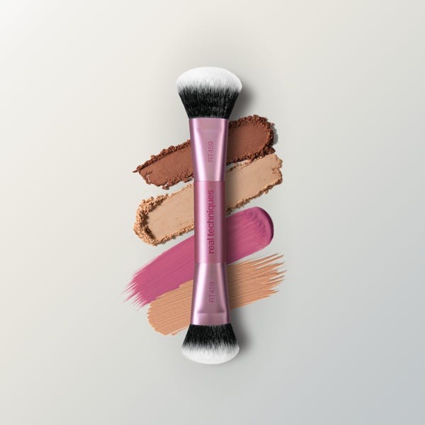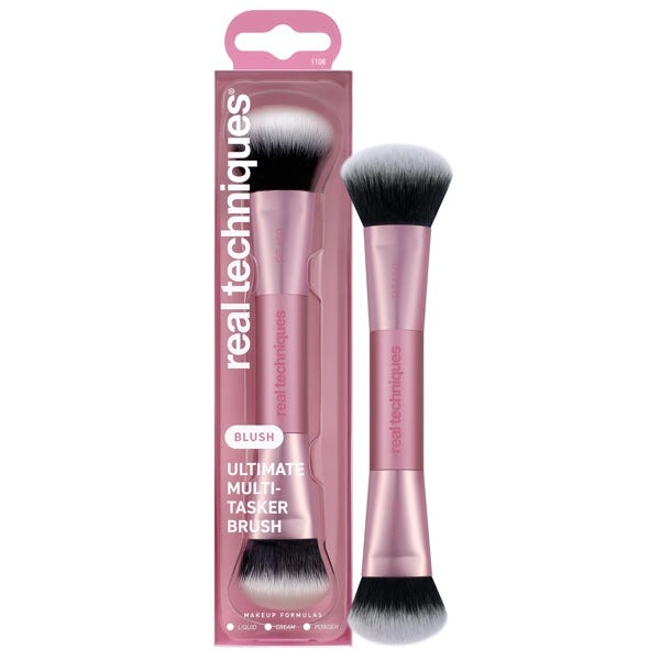 La brocha Real Techniques Ultimate Multi-Tasker Brush es una brocha de maquillaje de doble punta que difumina, construye y fija tu look con facilidad. Esta brocha facial versátil ofrece una aplicación controlada y sin errores de rubor, bronzer, contorno y base para un acabado uniforme y sin marcas.