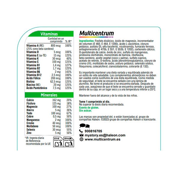 Puede tomar Multicentrum durante períodos prolongados para ayudar a complementar su alimentación.