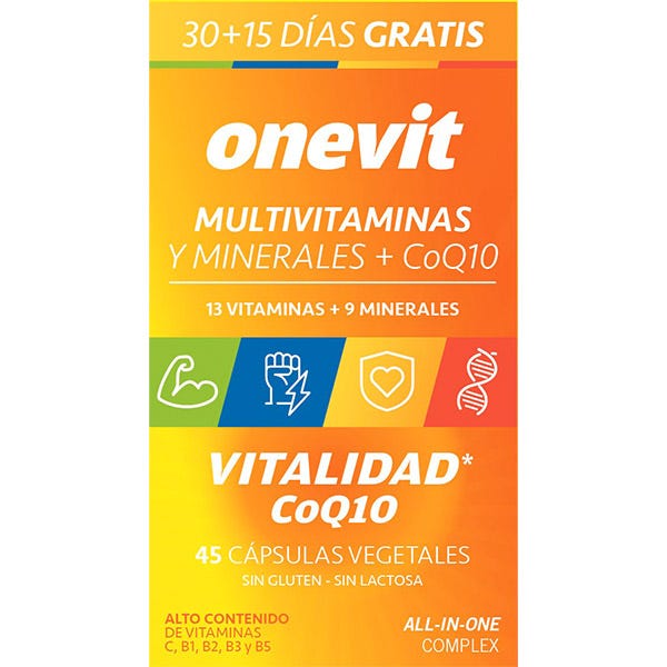 Onevit Vitalidad Multivitaminas + Minerales + CoQ10 (45 cápsulas)