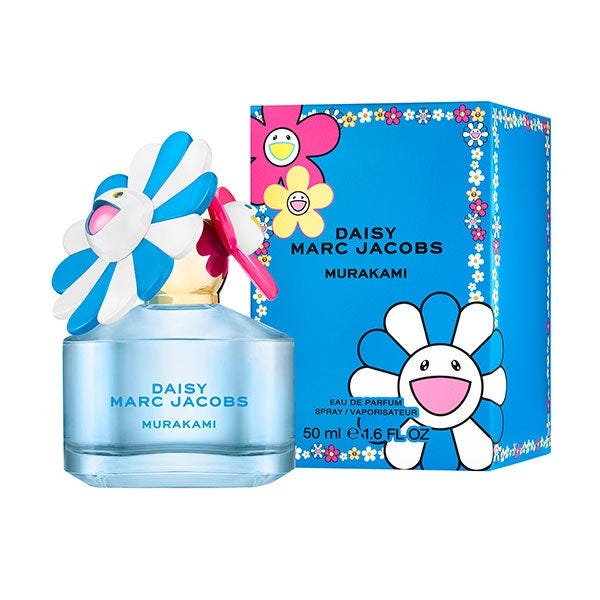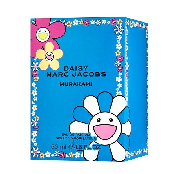 El frasco es una fantasía de coleccionista. Con un azul vivo, coronado por las icónicas flores de Murakami, transforma el original diseño Daisy en un tesoro del arte pop. Creado conjuntamente por Marc Jacobs, Takashi Murakami y Coty, el frasco simboliza la unión perfecta entre el capricho y el arte audaz: una invitación a jugar, soñar y florecer.