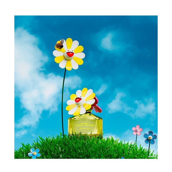El frasco tiene el encanto de un codiciado objeto de colección. De color amarillo alegre y rematado con un estallido de flores en tecnicolor, el frasco rinde homenaje a los motivos icónicos de Murakami a la vez que celebra la silueta clásica de Daisy. Codiseñada por Marc Jacobs, Takashi Murakami y Coty, es más que una fragancia: es una obra de arte.