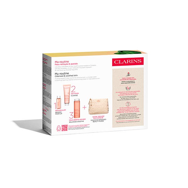 Todo ello en un exclusivo neceser Clarins que convierte la limpieza diaria en un momento de bienestar para una piel limpia, calmada y luminosa.