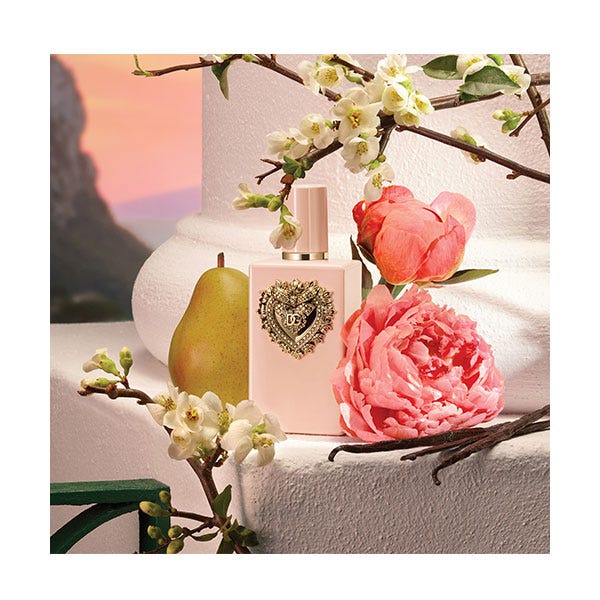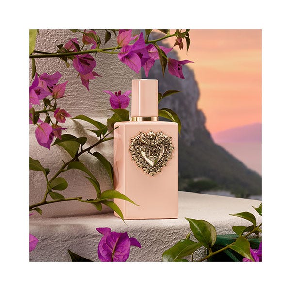 El perfume se presenta en un frasco rosa brillante adornado con el Sacro Cuore dorado, un diseño exquisito que refleja la elegancia atemporal y la artesanía refinada de Dolce & Gabbana.
