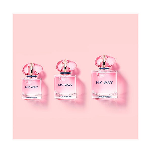 Este cautivador y floral eau de parfum está encapsulado en un nuevo frasco transparente que eleva su distintivo tono rosado. El tapón talismán traslúcido color rosa, corona el icónico frasco de My Way para una reinterpretación fresca y juvenil.