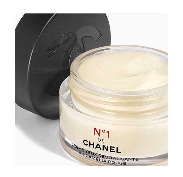 La crema para el contorno de ojos N°1 DE CHANEL combina la acción del extracto de camelia roja, activo potenciador de la vitalidad celular, y del "light complex", para una mirada más abierta y descansada al instante y un contorno de ojos alisado y luminoso.