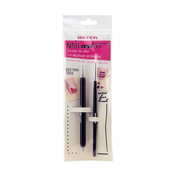 Contiene un pincel para poder crear líneas y dibujos y un puntero doble con doble cabezal con bolita pequeña y bolita media.